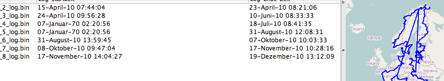 thx for your answer. have you found out anything? I tried again, but the strange lines through entire europe still exist. What I found, that there must be a bug in the bin files Buesli_4_log.bin, Buesli_4a_log.bin, and Buesli_5_log.bin. Curiously I cannot open the bin files. I tried with Stuffit Expander, but no file was created. Is that normal?