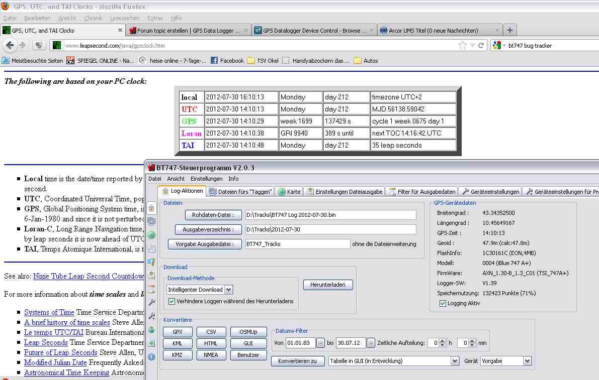If so then the naming is misleading ... at least it mislead me as I went into "troubles" on geo-tagging my photos with having shifted them 16s too much based on the timestamp shown in the bt747 (I took a picture using the camera of the screen showing bt747 with the gps receiver being connected. And then shifted the EXIF timestamps by